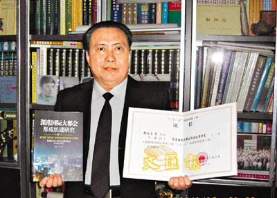 ■魏達志與其著作《深港國際大都會形成機理研究》。 本報深圳傳真