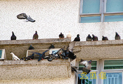 被指餵飼白鴿的非常住戶姓李(約60歲),4年前遷入上址中層單位,有8名家人共住。據鄰居稱,有人愛看鴿群在空中盤旋飛翔,兩年前開始餵飼白鴿,初時只用一些麵包碎和食物殘羹,後來用盆放置「雀粟」餵鴿,引來「百鴿齊飛」的壯觀場面,大廈外牆滿是鴿糞。過去曾先後向區議員、食環署及漁護署投訴,但都不了了之。家住上一層的阿婆投訴說:「鴿糞好臭,由於日日都有鴿糞,現在索性不開窗算了。」