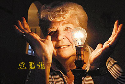 ■比尼與她的傳家之寶「長壽燈泡」。 網上圖片