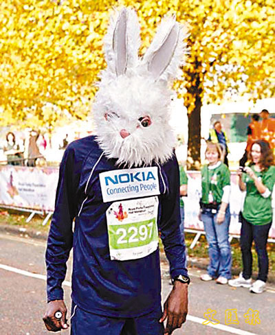 英國倫敦舉行了一場慈善半馬拉松競賽,結果由一名裝扮成「兔人」的跑手,擊敗其他12,000名對手奪標,獲得在場的觀眾歡呼喝彩。這名戴上白兔頭出現於皇家公園基金會舉辦半馬拉松賽跑的男子,並非這次慈善活動的搞笑跑手,而是非洲肯尼亞著名中距離選手穆里伊蒂。