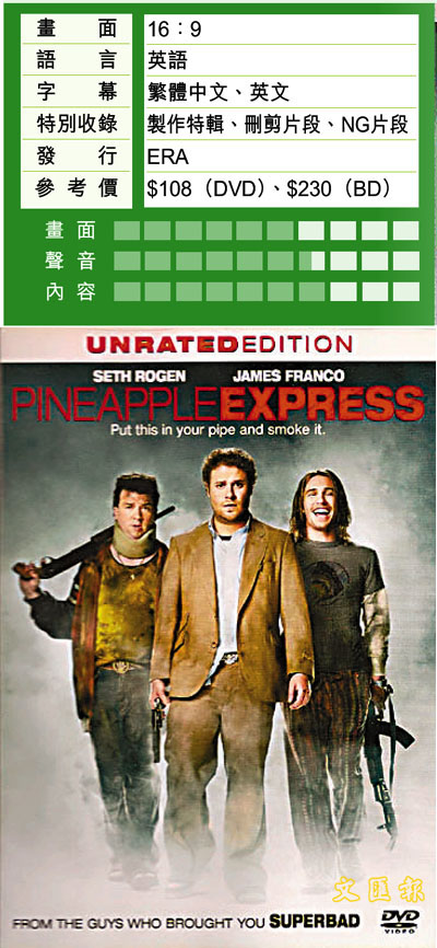 兩位主角也很值得大家留意,Seth Rogen是近年冒起的喜劇演員,外表雖然有點成熟,但實則只有26歲,更重要的是,他除了演喜劇本事外,還具創作才華,之前《弊傢伙……玩大驉n和這部《菠蘿快車》他都有份參與編劇,這兩部作品已可見他有很不錯的想像力。James Franco是已建立了一定名氣的演員,出道多年,演的都是較正經的角色,包括較為人熟悉的《蜘蛛俠》綠魔之子,這次一改戲路演喜劇,潛能盡現,早前更被提名金球獎最佳男主角。