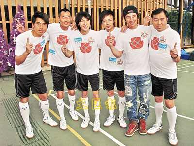 【本報訊】(記者 李慶全)孫耀威(Eric)、張晉、黃德斌、黃又南、Otto及劉以達昨日為影音使團開拍的《流浪漢世界盃》宣傳,演員們抵達馬灣運動場舉行友誼足球賽。只是孫耀威卻沒落場比賽,全因他剛在英國及瑞士滑雪歸來後全身關節似是碎了一般,右手手肘更是動彈不得,他表示滑雪時曾於半空飛插落地受傷,躺於地上良久才懂反應,摸摸自己四肢齊全才安心下來,現回港都準備看醫生做針灸。