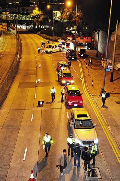 港島交通部警員昨日凌晨12時45分,在金鐘道向中環方向的高等法院對開路面設置路障,約20名警員抽查駛經現場的雙層巴士、小巴、的士及各類型私家車輛等;其間,運輸及房屋局局長鄭汝樺到場視察,她表示,警方第一天開始所設路障,運作上大致暢順,警方會檢討情況,她希望司機明白做隨機呼氣測試是為了保障大眾生命,測試每次只須3分鐘,實施新措施是希望警惕司機喝酒後不要駕車。