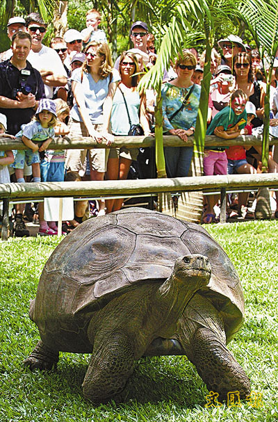 ■達爾文1835年從島上撿回英國、現年已179歲的加拉巴戈斯象龜「哈麗利特」。 資料圖片