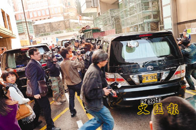 ■風聞在爭產官司後從未正式曝光的陳振聰會出席宏霸數碼的上市慶功會,記者一擁而至採訪。 本報記者張以正 攝