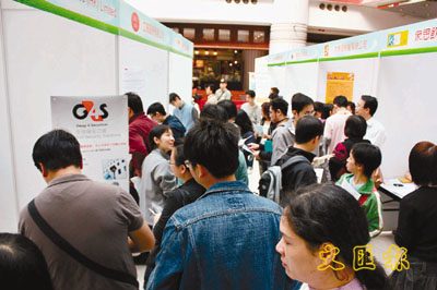 ■首個專為殘疾人士而設的招聘會昨日舉行,吸引700名市民應徵,其中155名殘疾人士成功獲聘。本報記者邱益忠 攝