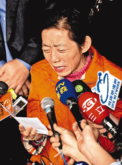 ■陳水扁之妻吳淑珍在庭訊結束後,向在場民眾及媒體發表簡短聲明,對台灣社會表示歉意。法新社