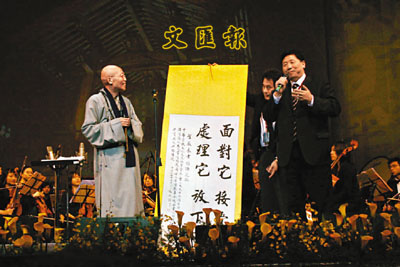 聖嚴長老為促進兩岸佛教交流總是不遺餘力,曾先後六次親自率團參訪大陸佛教聖跡,「五百菩薩走江湖」的盛舉一時傳為美談。記得2002年冬,長老率團護送山東四門塔失散多年之「佛首」回鄉,為保存中華歷史文化盡一分心力。當時連續十幾天的雨霧天氣突然變得雲開霧散,陽光燦爛,長老的功德盛舉,似乎也感動上天蒼穹。此次大陸之旅被稱為「流轉—聚首」。也正是海峽兩岸這一段可歌可泣的文化因緣,讓我們在北京相聚。時雖嚴冬,我卻深深地感受到了長老像春天般勃發的拳拳愛國之心。聚也依依,散也依依。