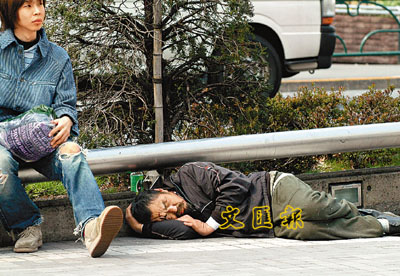 ■日本受金融海嘯重挫,導致愈來愈多人無家可歸,露宿街頭。 資料圖片