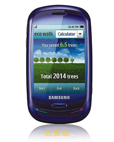 三星首部太陽能手機名為「藍地球」(圖),外形時尚,以輕觸式控制,機背有太陽能充電板,聲稱只需充電10至14小時,便可供通話約4小時。手機亦可用普通插頭充電,太陽能充電板則用來延長電池能量。 ■綜合外電消息