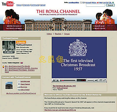 2008年10月,英女王曾參觀Google的倫敦總部,並在視頻網站YouTube上開設了王室頻道。女王曾公開表示希望藉著這個王室頻道,能夠令她更加公開和直接面對民眾。(許森)