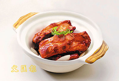 ■濃湯雞煲翅單賣售價$45,圖為無錫醋香豬仔骨。