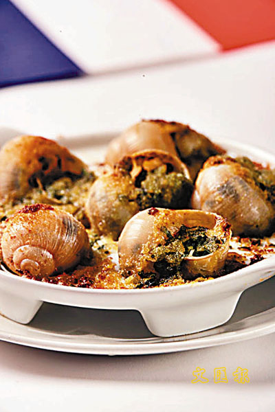 蒜頭(壓成蓉)2粒;紅蔥(切碎)1粒;軟化牛油100克;新鮮荷蘭芹(切碎)4茶匙;鹽1茶匙;黑胡椒適量;乾白酒、乾邑各半茶匙;罐頭蝸牛1罐(約200克);新鮮麵包屑2茶匙