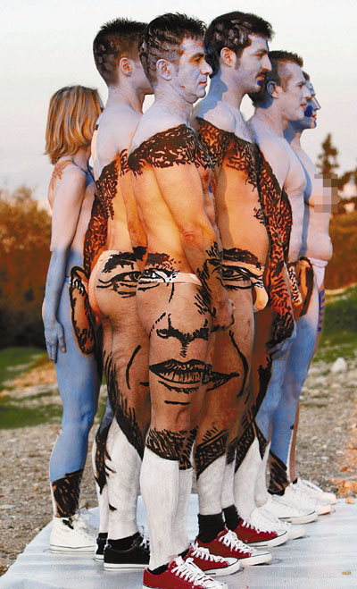 奧巴馬熱潮繼續遍全球,一班瑞士身體彩繪表演者,前日在身體塗上奧巴馬肖像現身希臘雅典,展開他們的「雅典降臨」藝術馬拉松表演。表演將巡迴全球,直至2050年12月。 路透社