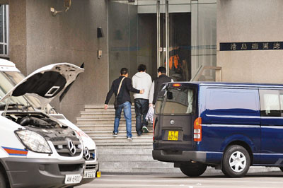 兩名男子,昨在跑馬地馬場跑道因形跡可疑,被馬場保安員截獲並報警。警方到場將2人拘捕,押返警察總部調查。