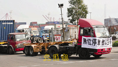 【本報訊】(記者 聶曉輝)約20名貨櫃運輸業職工總會成員,不滿政府沒有諮詢業界,便收回一個位於青衣路及青鴻路交界的貨櫃車停車場,令300部貨車及貨櫃車需改用距離較遠、月租較昂貴的停車場,令經營成本增加。約10部貨車及貨櫃車昨在貨櫃車停車場附近繞圈慢駛(見圖),以示抗議。總會主席趙資強表示,下星期將約見地政總署、民政署及運輸署官員開會討論事件。