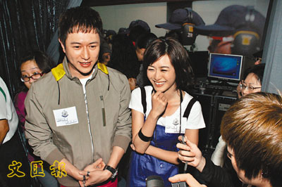 【本報訊】無線新劇《學警狙擊》現正播映,昨日劇中一班演員包括苗僑偉、周海媚、江若琳、陳鍵鋒、梁嘉琪及謝天華等拉隊到會展「教育及職業博覽」為警察招募攤位宣傳,眾人在攤位派發宣傳單張,緋聞情侶陳鍵鋒、梁嘉琪日前因宣傳劇集齊齊受傷,昨日兩人繼續成為焦點(見圖),陳鍵鋒被記者指梁嘉琪對他有意思,他即臉紅紅尷尬彈開,又大讚嘉琪是好女仔。