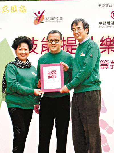 另外,有線電視旗下藝人黃翠如、曹敏寶、周吉佩、戴澴雨和薛斌昨日也參加慈善步行籌款,五位藝人均表示以前不太清楚政府的資助計劃,從今開始會積極報讀課程進修作自我增值。黃翠如和曹敏寶表示,加入有線電視後,公司也有贊助她們進修,黃翠如學懂了如何化妝,曹敏寶則學了跳舞,她們說:「現時金融海嘯,好多人失業,學多幾門技能,搵工也容易些,而作為藝人,更應該不停學習,以便配合公司作多元化發展。」