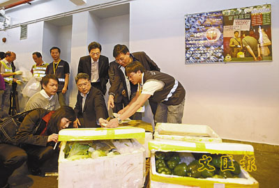 ■立法會食物安全及環境事務委員會6名議員到文錦渡口岸巡視,了解輸港蔬菜抽檢情況。 本報記者曾慶威 攝