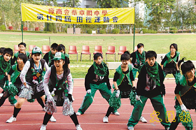 ■廠商會蔡章閣中學日前舉行第24屆田徑運動,參賽學生落力比賽,啦啦隊亦用心打氣。學校提供圖片