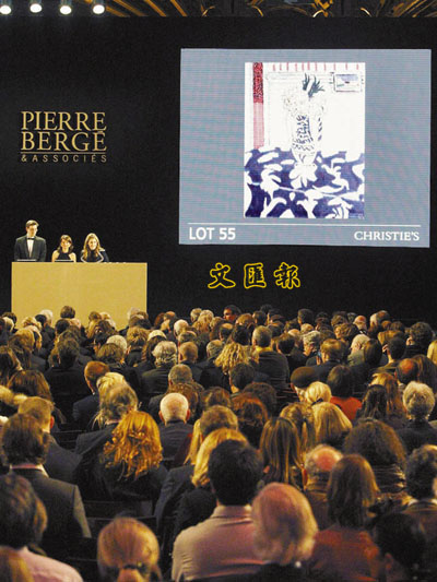 佳士得前日起一連3天在巴黎拍賣一批已故設計師聖羅蘭(YSL)的收藏品,首天拍賣額高達2.06億歐元(約20.5億港元),創下成交額最高的拍賣會紀錄,令金融海嘯下對是次拍賣會的憂慮一掃而空。 ■綜合外電消息