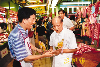 ■王坤走到公屋街市內聽取商戶訴求 。王坤提供圖片