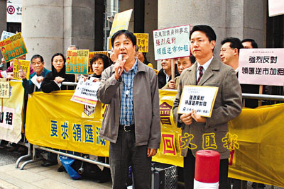 ■領匯瘋狂加租,王坤聯同商戶到立法會外抗議。王坤提供圖片