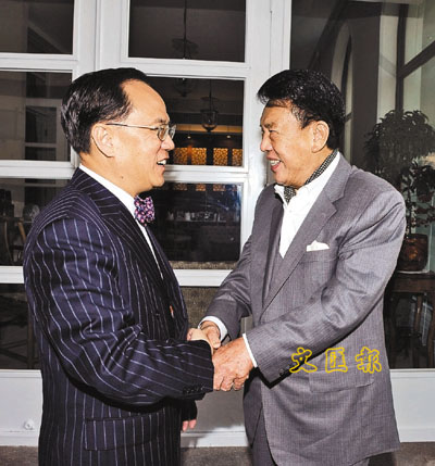 曾蔭權昨在禮賓府會見企業家余彭年,了解他為本地大學畢業生提供100個實習職位計劃。