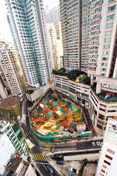 ■太古地產在西摩道興建逾50層樓高住宅,將阻擋鄰近樓宇如雍景臺的景觀。 本報記者溫瑞麟攝