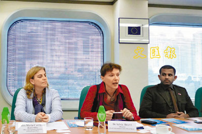 ■柏森杰(右)表示,經濟放緩讓港幣兌換歐洲貨幣更為划算,相信會吸引更多港生到歐洲留學。本報記者覃卓嘉 攝