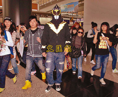 【本報訊】(記者 梁靜儀)羅志祥(小豬)昨早來港出席晚上的《勁歌金曲》及今日的簽唱會。小豬昨早九時抵港,同行的還有舞蹈員及其他工作人員,一行十人浩浩蕩蕩步出機場,現場數十名接機的粉絲即一擁而上。
