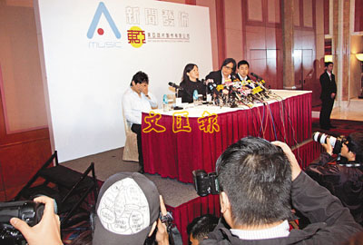 ■東亞唱片昨於黃埔海逸酒店舉行記者會,陳述對衛詩在日本涉嫌藏毒被捕的立場。本報記者彭子文 攝