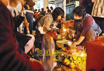 其中一個由「金牌打手」後人經營的攤檔,善信平均要輪候逾2小時,負責人說,昨日生意明顯較去年上升1成,作拜神之用的米、綠豆也因客人太多要補貨,但考慮到市道差,今年沒有加價:「叫到聲沙,打到手軟,每次依然收50元!」他又指,今年「打情敵」的人少了,祈求「保住份工」的人最多。