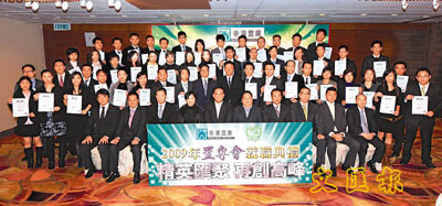 【本報訊】香港置業行政總裁李志成日前與集團顧問張錦成共同主持2009年度「置專會」委任典禮。憑著傑出的領導才能,九龍區(西九龍)助理區域營業董事黃永忠獲委任為2009年度「置專會」會長,而香港區助理區域董事屠淑明則獲委任為副會長。兩人將帶領共17名「金置專」主管及31名「銀置專」營業員,繼續為港置在市場爭取更大的佔有率。