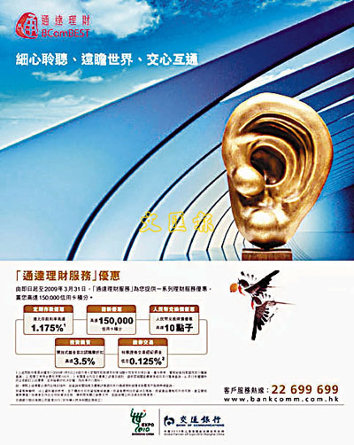 ¥Ñ§Y¤é°_¦Ü2009¦~3¤ë31¤é¡A¦¨¥\®Ê¨¬°³q¹F²z°]«È¤á¨Ã¦s¤J¥þ·s¸êª÷¹F«ü©wª÷ÃB¥H¶}¥ß3Ó¤ë©Î¥H¤W©w´Á¦s´Ú¡A§Y¥iÀò¸Ó¦æ«H¥Î¥d¿n¤À°ª¹F150,000¤À¡C¦¹¥~¡A·s«È¤á¶}¥ß©w´Á¹FHK$50¸U¡A§ó¥iÃB¥~ÀòÃØHK$300¶W¥«²{ª÷¨é¡C°£ªï·s¼ú½à¥~¡A³q¹F²z°]«È¤á§ó¥i¨É°òª÷©w´Á§ë¸êp¹º¤Î°òª÷º¦¸»{ÁʶO§é¦©Àu´f¡C