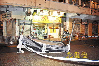 ■尖沙咀柯士甸路一幅帳篷遭強風吹塌,橫擱馬路上。