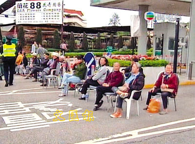 【本報訊】元朗錦繡大道近日掛出禁止貨櫃車輛駛入路牌,引起附近大生圍村民不滿,近30名年老長者,昨晨9時在錦繡花園車輛入口靜坐抗議;警方需派出半百警員到場嚴陣戒備,經過勸諭後,村民曾願意讓出一條通道方便錦繡花園出入,但不久又再坐回出入口,令現場交通大受影響,事件擾攘約3小時,在錦繡花園管業處收回路牌後,村民才和平散去。
