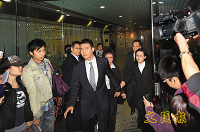 【本報訊】在無線劇集《學警狙擊》中飾演黑社會人物「Laughing 哥」的藝員謝天華,去年酒後駕駛在西區海底隧道撞向的士車車尾,早前他承認醉酒駕駛和不小心駕駛2罪,昨日與妻子十指緊扣下出庭聽取判刑。謝原獲建議判處社會服務令,但他聲稱拍劇繁忙不能完成。裁判官強調,不會優待藝人,又指謝自2000年起幾乎年年都有交通定罪,但相信他不會重犯,遂判他監禁6星期緩刑一年,罰款9,500元,另需停牌一年半。
