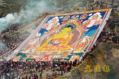 高30米寬20米的絲織大佛像,會於藏曆6月30日的雪頓節展出,場面壯觀。