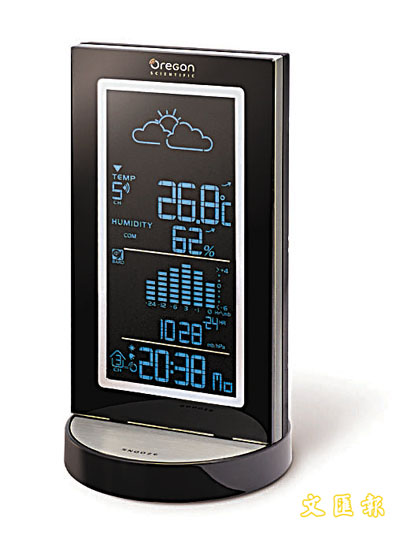 近日,天氣時而酷熱,時而寒冷,甚或忽然下雨,一時間錯過了天文台的報告,穿錯衣服、沒帶雨傘也多麼麻煩,如果家裡添置一個天氣報時系統,一早起床便可知道當天的天氣便非常方便。這個Oregon Scientific液晶天氣報時系統BAA908HGH,特設藍色背光燈顯示及金屬底座,外形時尚典雅、別具風格。它具備天氣預報功能,天氣以圖樣顯示,更具有氣壓計探測室內氣壓指數,同時亦可顯示舒適指數,舒適度以圖像顯示潮濕、舒適、乾燥等狀態。它亦備有8分鐘貪睡響鬧功能,當時計響鬧時,只要按下機身頂部,即可啟動貪睡響鬧功能,並在8分鐘後再次響起,防止用家遲到。