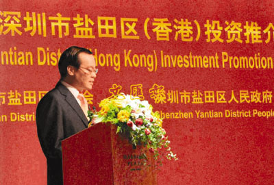 鹽田區區長袁寶成介紹,鹽田與香港水陸相連,是港深兩地的重要結合點, 因此鹽田以其獨特的區位優勢、便利的交通、優良的環境、巨大的潛力,正在被廣大海外投資者所青睞。鹽田建區10餘年來,包括和記、周大福等一批港資企業在內的外資企業在鹽田投資創業,並取得了良好的業績,為鹽田的經濟發展作出了突出貢獻。截止2008年鹽田的外資企業達到202家、出口總額94.32億美元,實際利用外資為1.4億美元。他說,今年鹽田區將進一步擴大固定資產投資規模,加快產業轉型升級步伐,實施城市更新計劃,將盡最大可能為投資者提供政策與法治方面的服務保障。