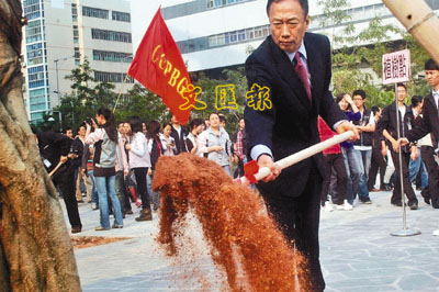 台富商郭台銘率富士康科技集團近千名員工在深圳植樹,拉開該集團本年度植樹減碳周活動序幕。 中通社