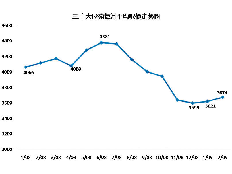 三十大屋苑每月平均呎價走勢圖 (圖)