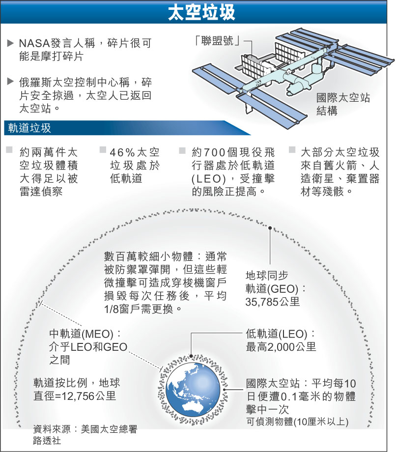 太空垃圾「橫行」 美3宇航員險死 (圖)
