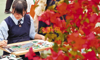 ■參加繪畫比賽的中小學生在花展中聚精會神寫生。 本報記者李志樑 攝