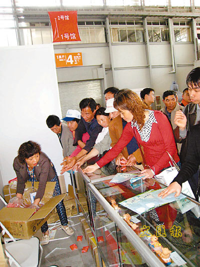 ■金融海嘯下,避孕套銷量不跌反增。圖為昆明性博會上,市民爭相索取免費避孕套。資料圖片