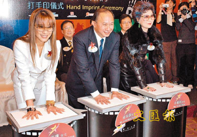 ■2004年1月5日楊紫瓊(左一)與導演吳宇森、息影女星于素秋為香港「星光大道」打手印。