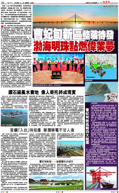 為進一步放大曹妃甸的品牌優勢,更加科學合理配置資源,推動唐山灣「四點一帶」整體開發戰略的實施,實現區域一體化協調發展,2008年10月經河北省委、省政府批准,成立曹妃甸新區。她的成立,向外界明確宣告曹妃甸的開發建設步入一個新的關鍵時期。儘管當前國內國際經濟形勢錯綜複雜,但曹妃甸建設者統一信心、不畏艱巨,勢讓這顆渤海明珠放射出璀璨光芒,終將撥開前面的烏雲迷霧,點燃宏圖偉業的藍色夢想。
