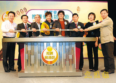 ■語常會委員陳志雲、陳守仁、推廣普通話大使方力申及活動主辦機構代表主持「2009年度語常會推廣普通話活動」啟動禮。
