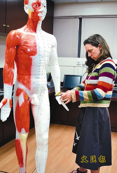 ■Susan對脈象的模型十分感興趣。本報記者彭美芳 攝